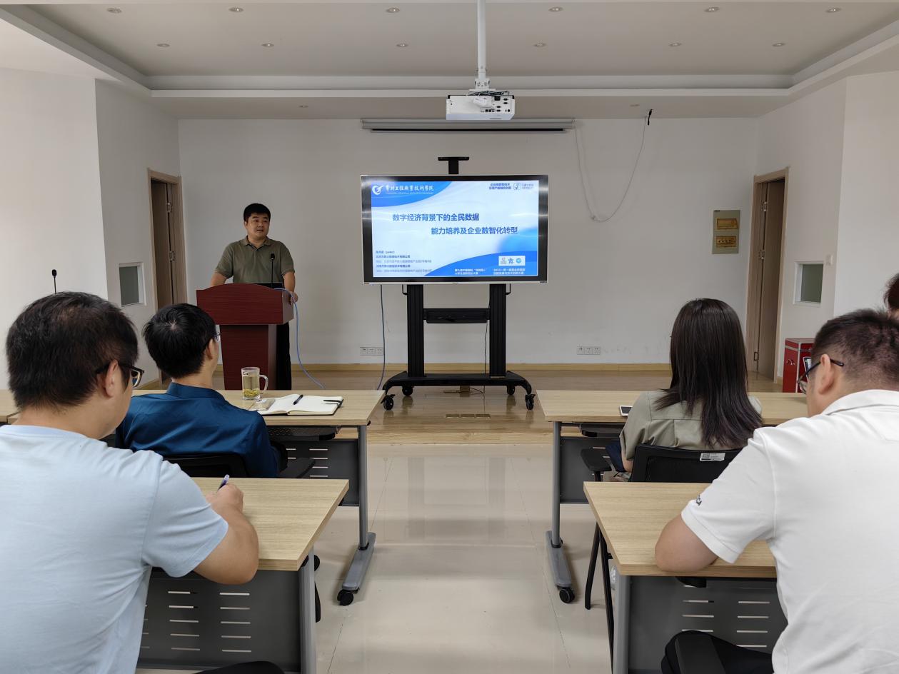9月21日,邀请北京万算大数据技术有限公司CEO陈月雷做“数字经济背景下的全民数据能力培养及企业数智化转型”专题学术报告,报告会由太阳集团tyc33455cc经理李仁璞主持,全校师生积极参与。陈月雷详细解读了国务院《“十四五”数字经济发展规划》的内容,介绍企事业单位在数智化转型过程中的最优路径以及提升全民数字素养能力与数据认知的方法,并从“专业+大数据创新融合”的视角,为全校各个专业提供具体的“专业+大数据”融合方案。在报告互动环节,参会师生还就课程数智化改革、大数据实训平台建设等数智化人才培养议题与陈月雷开展了深入交流。