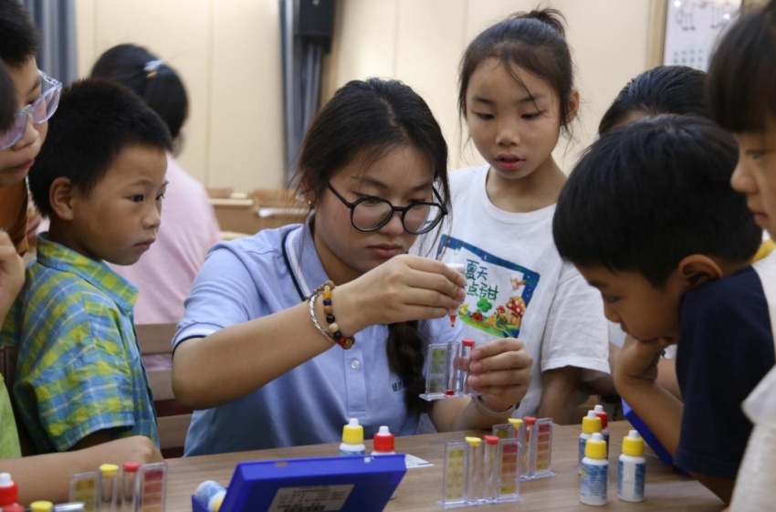 保护长江,播撒绿色理念。“我们志愿者和小朋友们一起手持画笔共同为‘长江大保护画卷’着色,将长江及江豚嬉戏的画面一一呈现出来,表达守护好长江生态的愿望。”志愿服务团队长任佳瑶表示,在开展的生态科普课上,同伴们深入讲解“长江禁渔”、江豚与长江大保护的重要性。同时,员工志愿者还带着儿童们做水的酸碱度检测小实验,学习环保知识,增强爱护长江母亲河的生态环境意识。